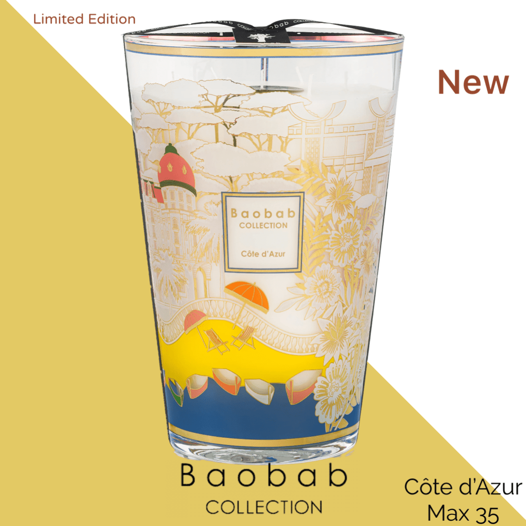 Baobab Geurkaars - CÔTE D'AZUR is meer dan een luxe geurkaars. Het gezeefdrukte decor is geïnspireerd op het iconische ontwerp van